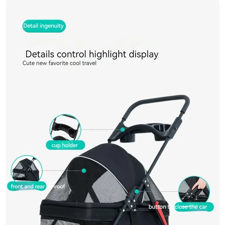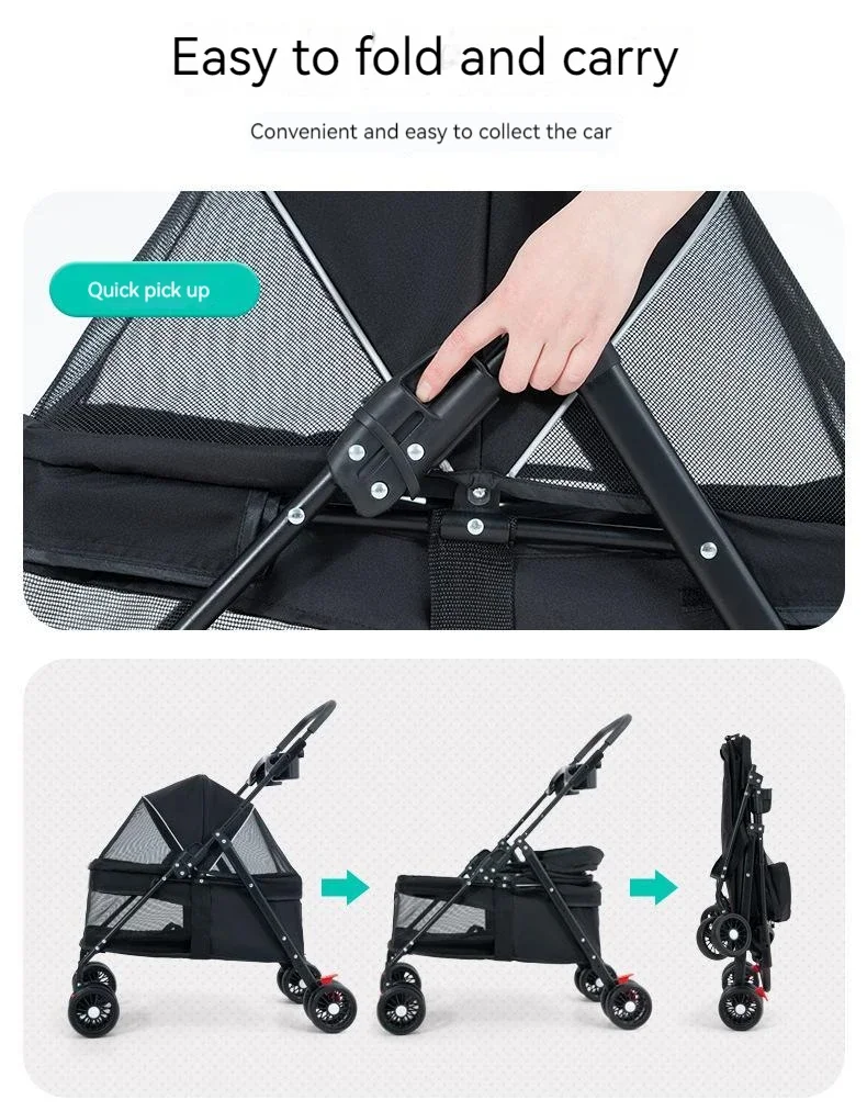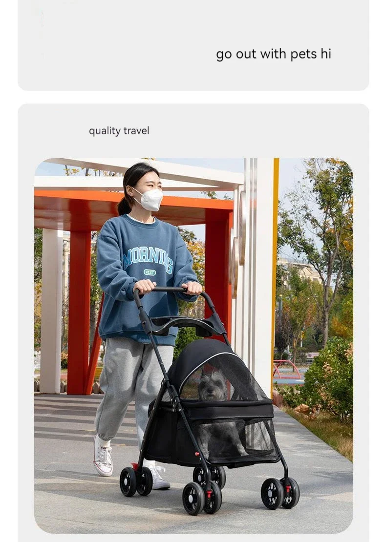 Lightweight Folding Pet Stroller | Breathable Outdoor Travel Carrying Bag for Small Dogs & Cats | Includes Meal Plate
