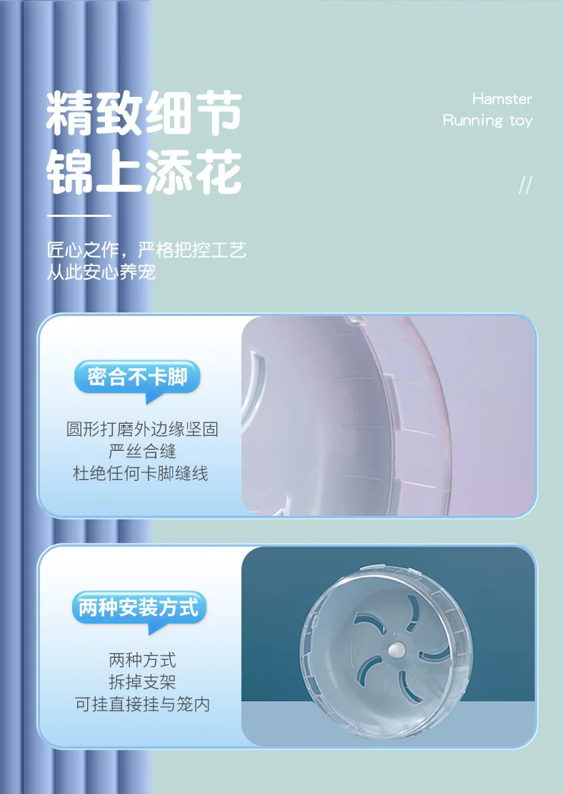 Silent Jogging Hamster Wheel | Exercise Play Toy for Small Rodents, Mice, and Gerbils with Brackets Accessories